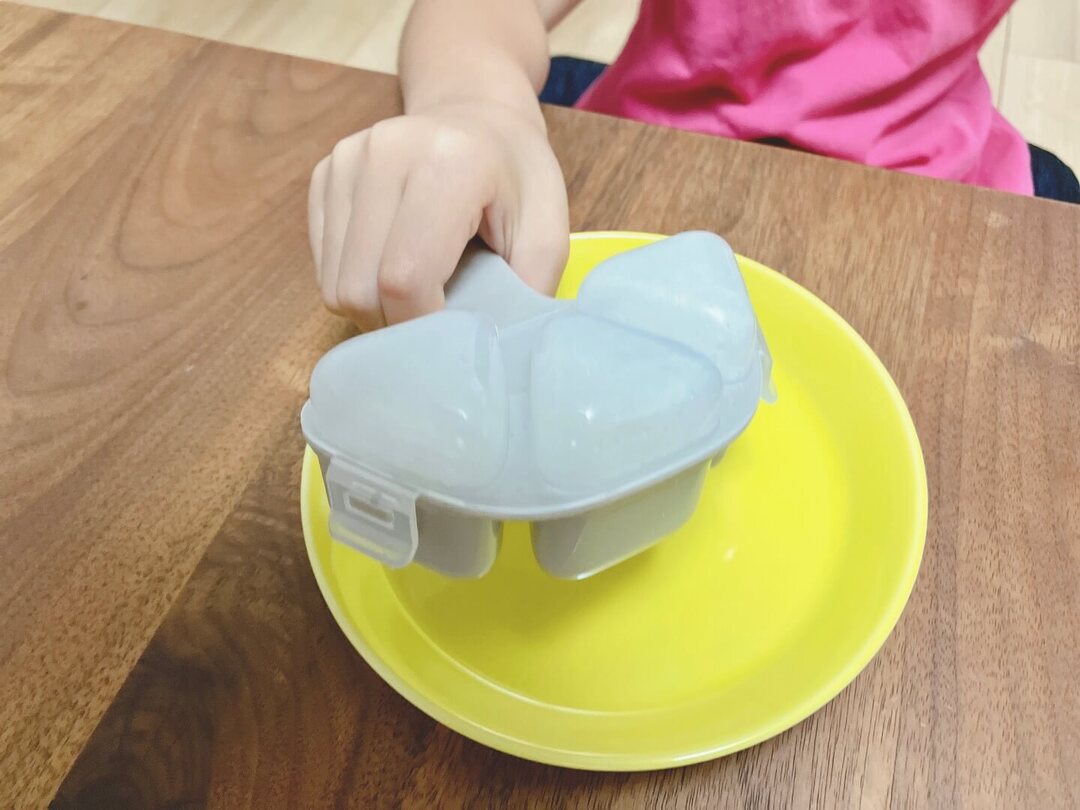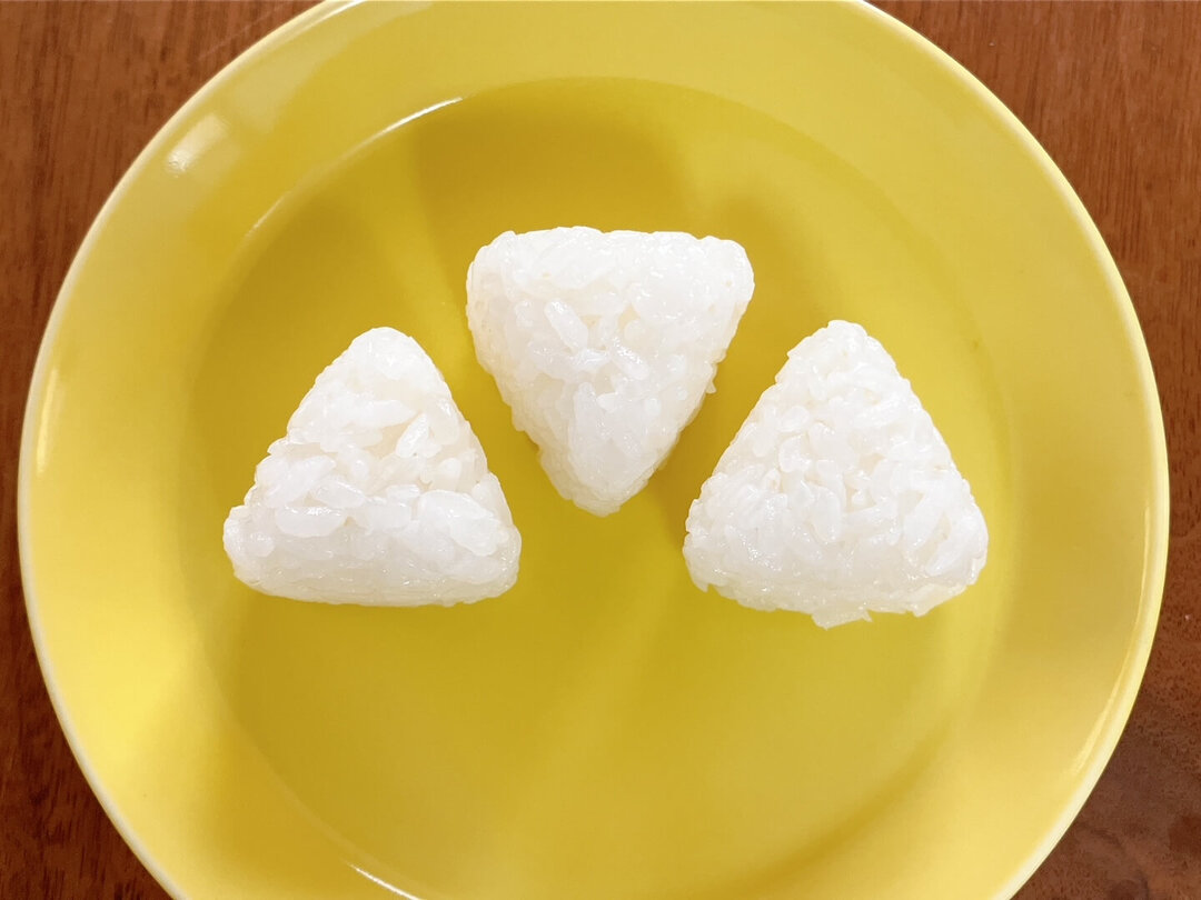 取り出せば完成!一辺が3cmほどの小さなおにぎりが3個できました♪