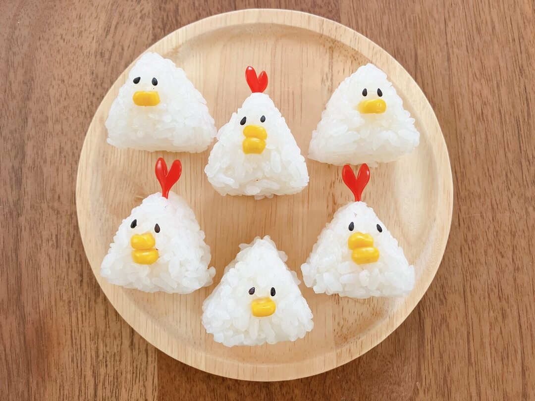 とぼけた顔がかわいい「にわとり&ひよこ」のおやこおにぎり。