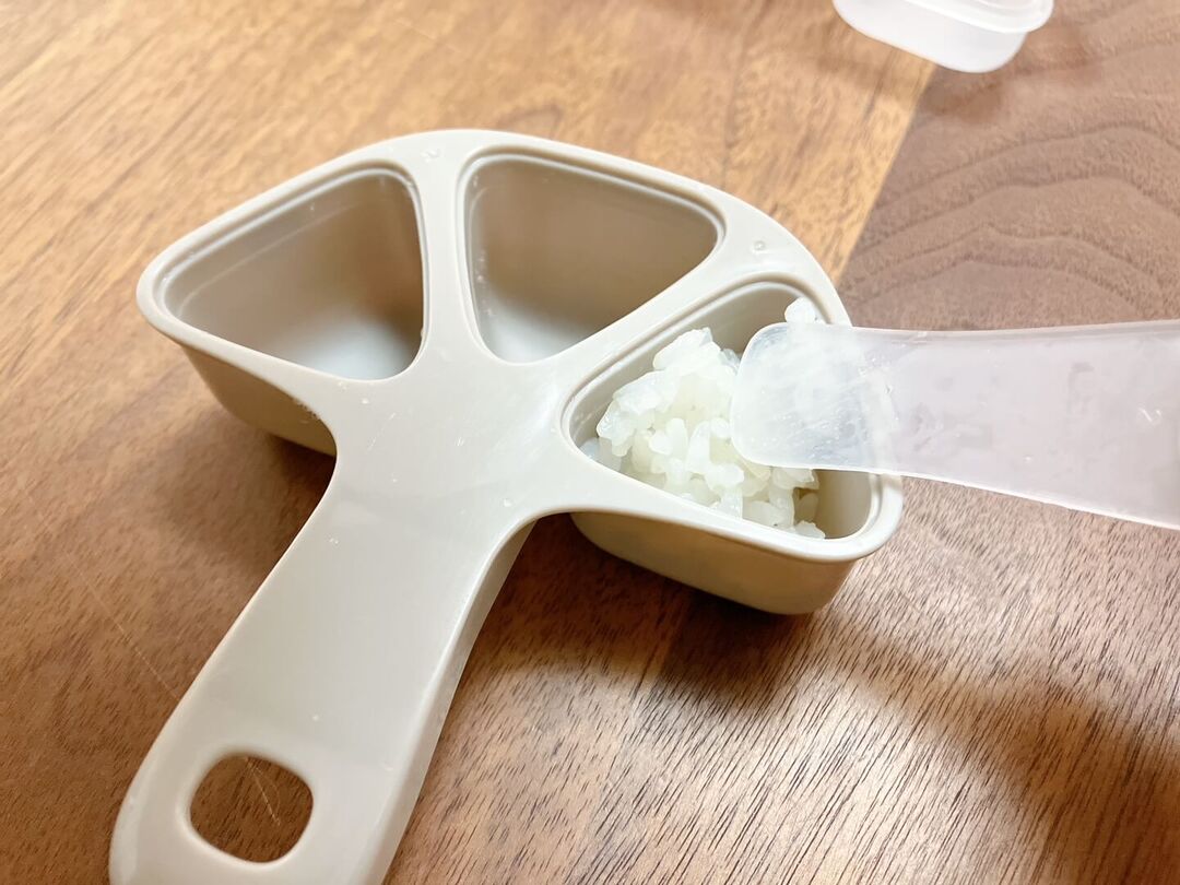 このタイプのおにぎり型は丸型や俵型が多いのですが、三角タイプは初めてです。食洗機対応なのもうれしいですね。
