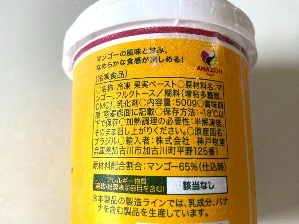 こちらが業務スーパーで見つけたカップ入りのマンゴーのペースト、「濃厚フローズンマンゴー」です。