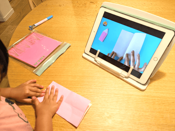 おやこで並んで折り紙をしても、タブレット画面が非常に見やすいので、いつも途中で諦めていた娘も最後まで折ることができました!
