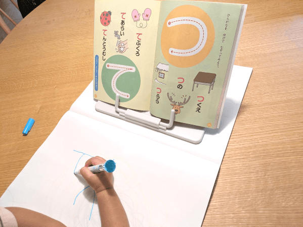 さらに、参考書などお手本にしたい本を見たいときにも大活躍!ひらがなに興味を持ちはじめた娘は、お手本を見ながら楽しそうに文字を書いていました♪