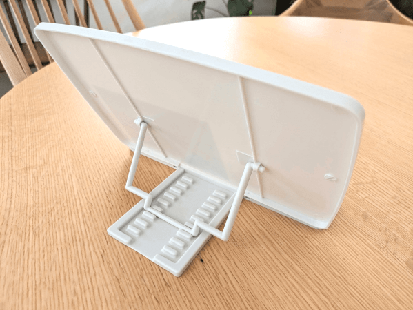 そんな時に見つけたのがこちら!ダイソーの「タブレットスタンドにも使える 読書台」(220円・税込)です。これならタブレットをおやこで見ながら折り紙に挑戦できるかも?さっそく使い心地をレビューします!