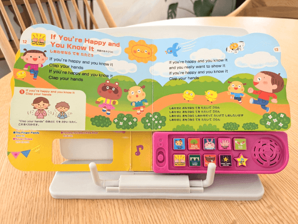 このように、ページを開いた状態で固定できるので、手遊びつきの歌絵本も両手を使って楽しむことができます。