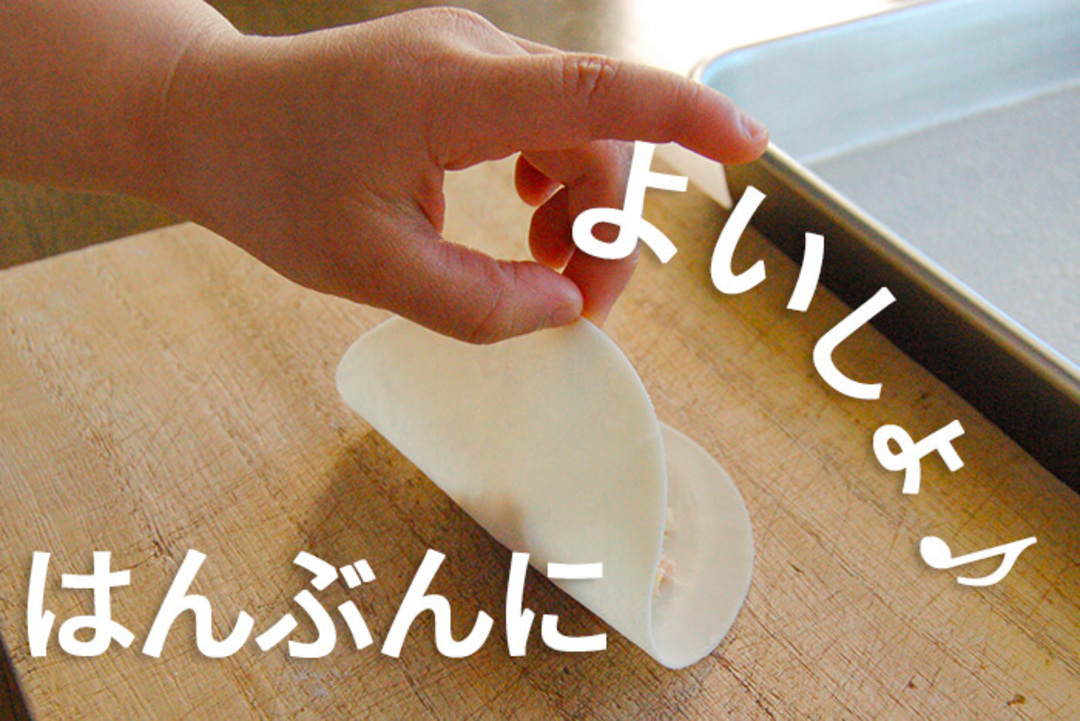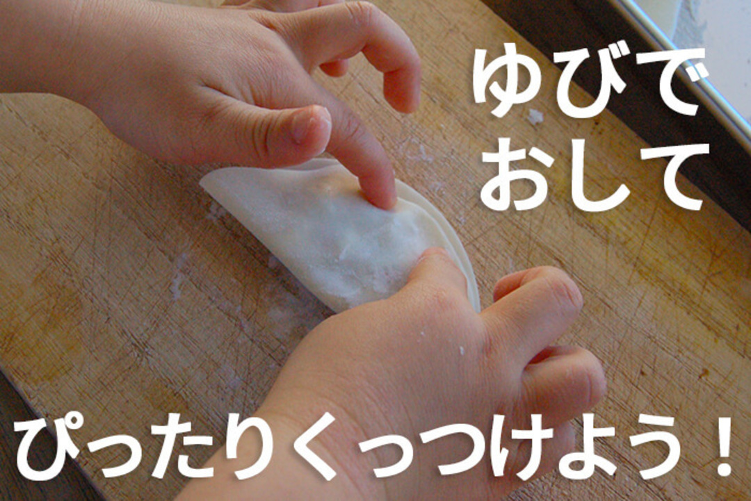 今回は親子で餃子作り!指先を上手に使って、餃子を包んでみましょう。