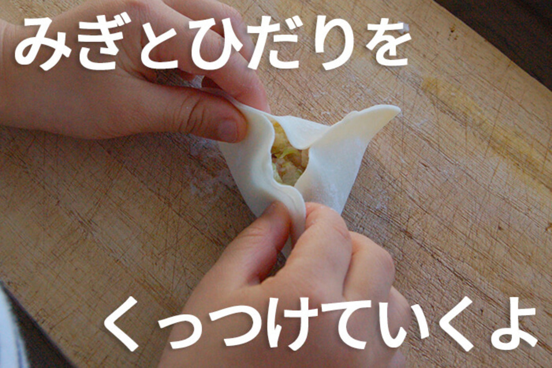 少しくらいあんがはみ出しても大丈夫!子どもは折り紙感覚で楽しめますよ。