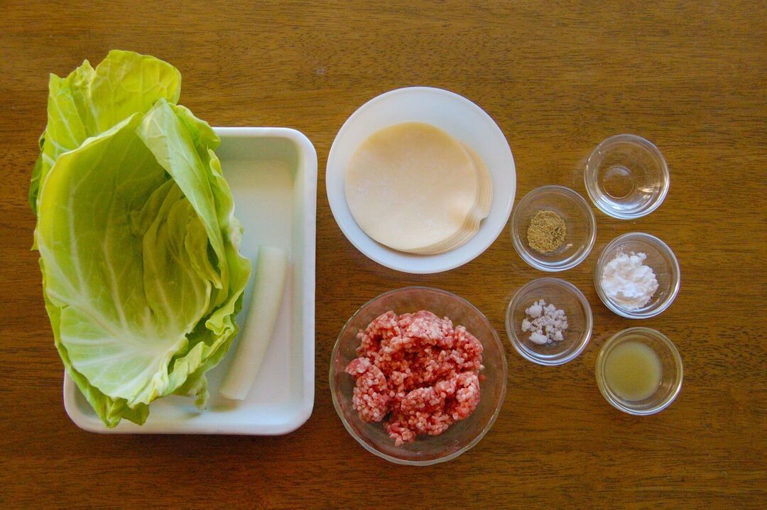 1.長ねぎはみじん切りに、キャベツは粗みじんに切る。キャベツに塩小さじ1/3をふり、よくもんで水けを絞る。