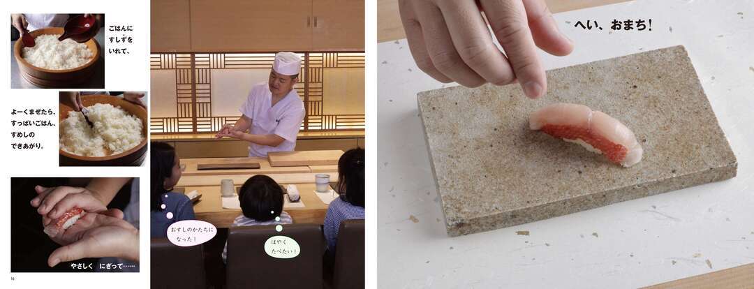 など、お寿司屋さんと元気いっぱいにやりとりしながら、「生きもの」が「食べもの」になるまでを見守っていきます。