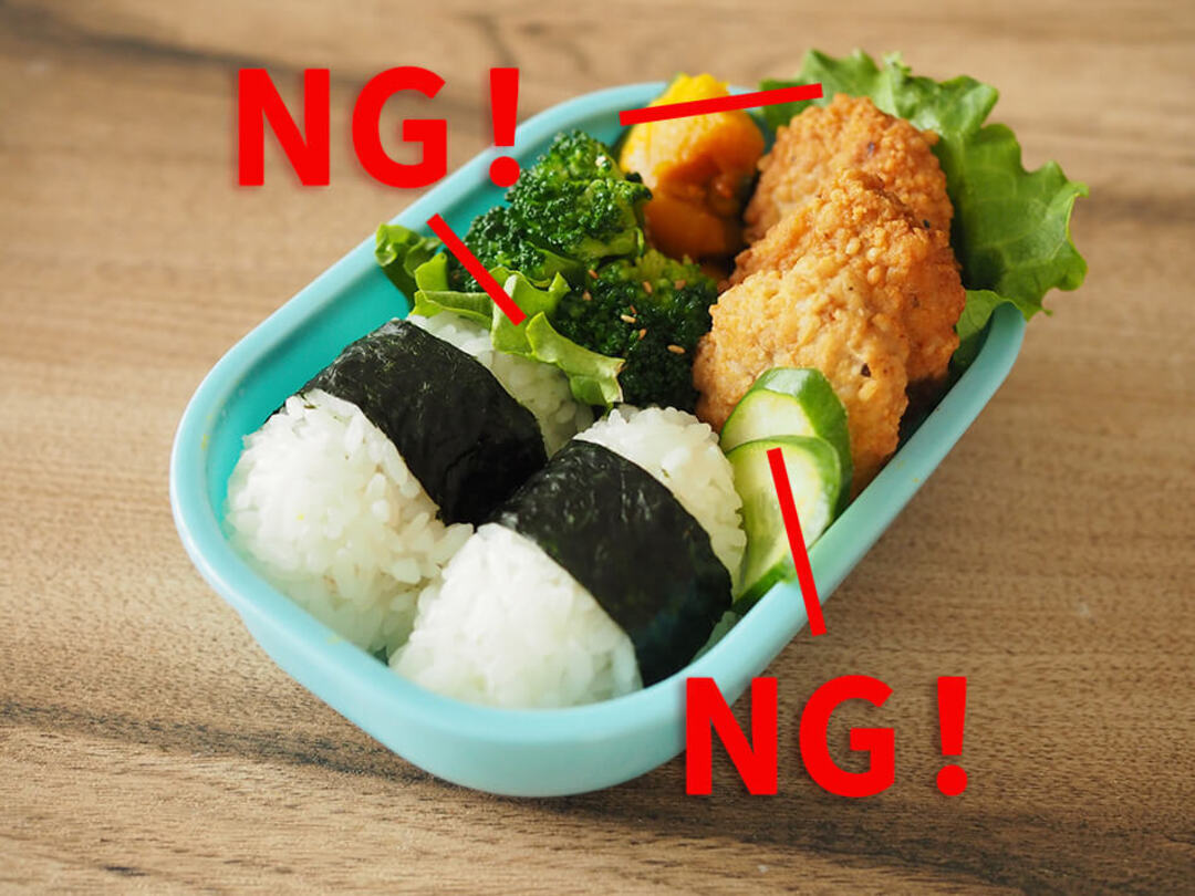また、見栄えのよいレタスなど葉物野菜での仕切りも実はNG。時間が経つとおかずの塩分によって野菜から水分が出て、食中毒のリスクが上がります。