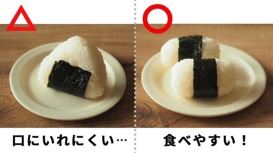 おにぎりも、大きいものより小さめの俵型のほうが子どもの手にもちやすく 、口に入れやすいのでおすすめです。