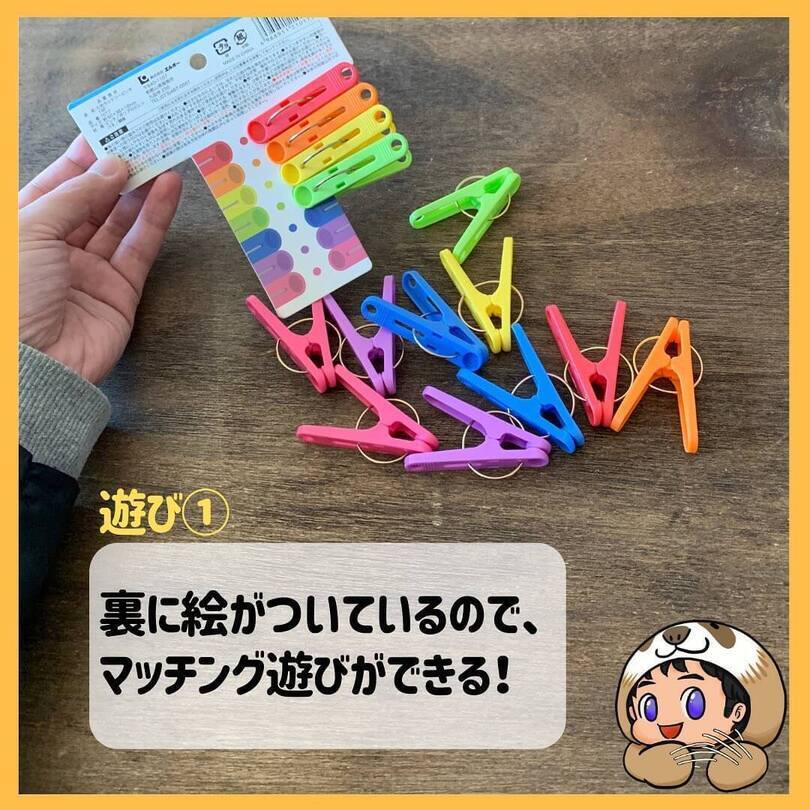 ごーやさんのおすすめは、100円ショップセリアで見つけた7色の洗濯ばさみ。このカラフルな色合いは子どもも喜びそうですね。
