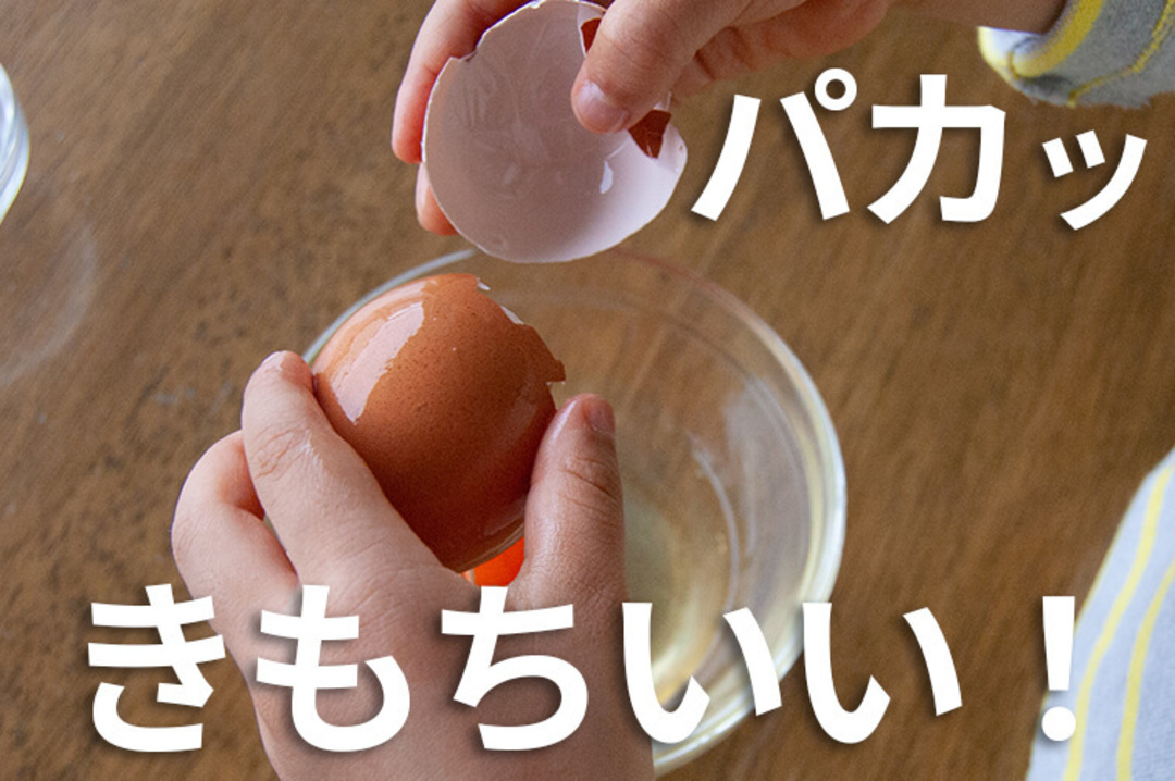 なかなか言葉で説明しても、わかりづらいこともあるので、卵に余裕があれば、まずは大人が一つ目の前で割って見せて、割れた殻をいっしょに持って、パカッと割る動作を一緒に練習してみるといいですね。