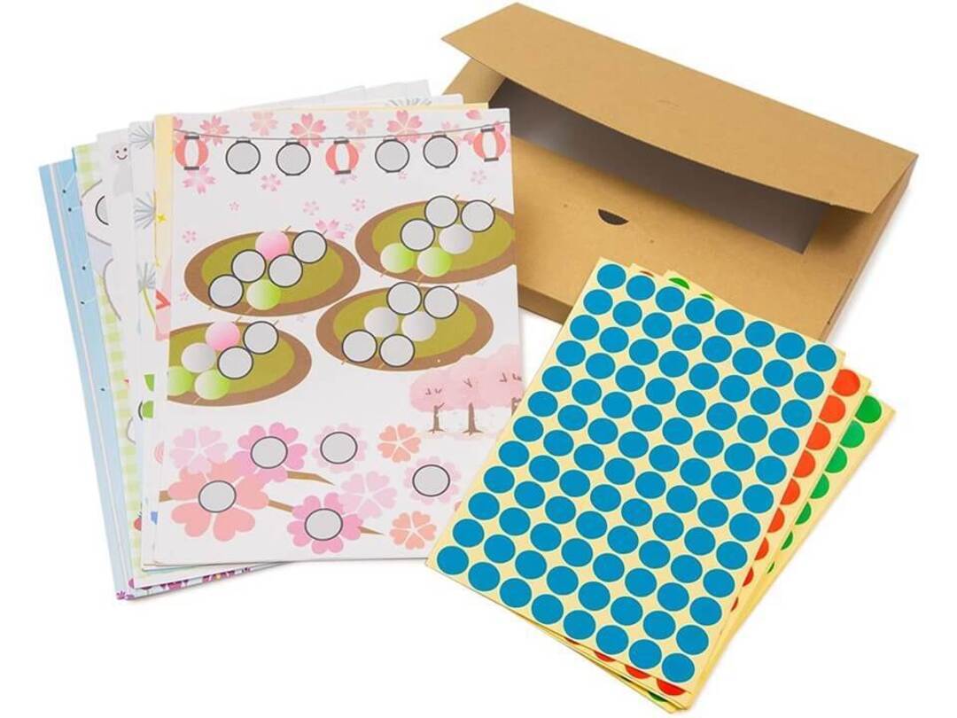 30種類の台紙と11色の丸シールが入った、モンテッソーリ教育定番の”シール貼りのおしごと”ができるセットです。シンプルな丸シールは小さな子でも貼りやすく、上質紙でできた台紙はお絵描きもOK。分け合えるシートタイプで、兄弟姉妹や友だち同士など、みんなで楽しみたいシール遊びにもぴったりです。