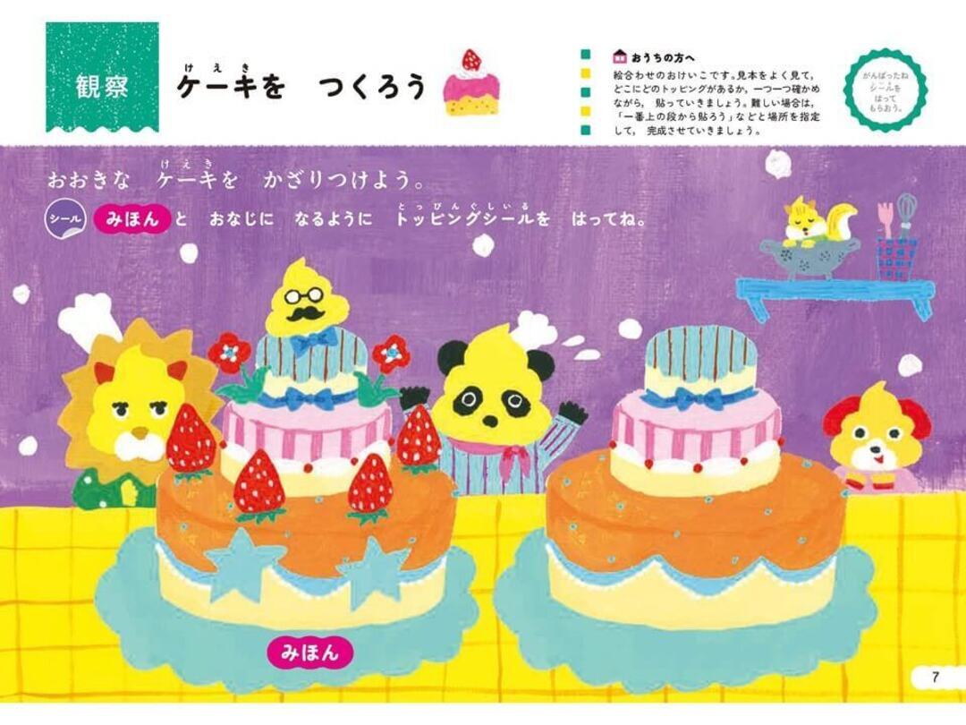 子どもに大人気のうんこ先生が登場する知育シールブック。絵本のような優しいタッチで描かれたパーティーシーンには、比較・推理・創造力を働かせるための知育要素がしっかり詰まっています。子どもへの声かけ例ものっているので、はじめての知育としてもおすすめですよ。