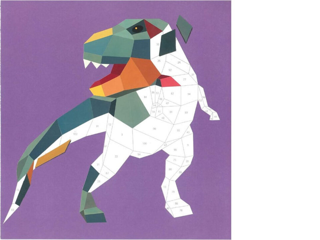 数字で示された場所にシールを貼って絵を完成させる知育シールブック。絵は複数の面で構成されているのが特徴で、貼り進めるとグラデーションがきれいなアート作品が浮かび上がってきます。枠にきれいに貼ることが要求されるので、集中力はもちろん、丁寧さを身につけてほしい子にもおすすめです。