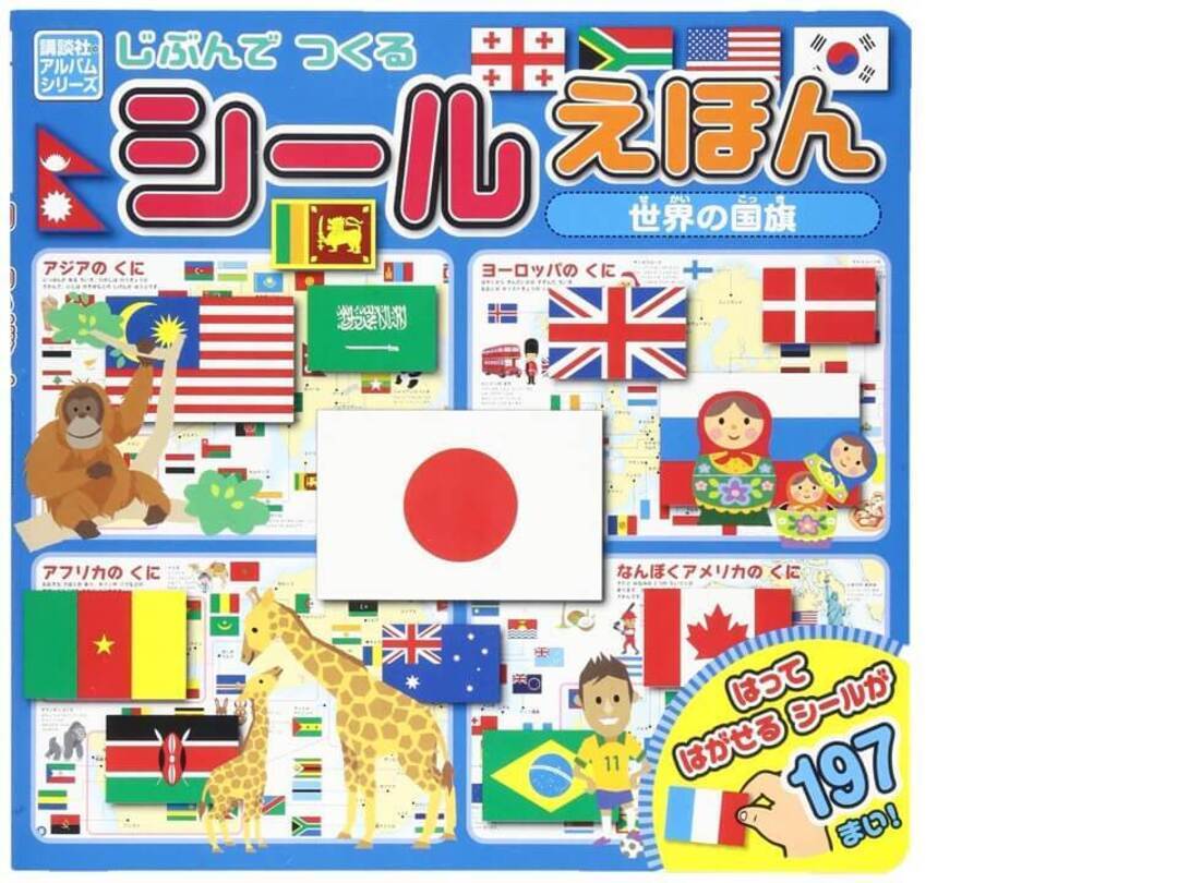 4つの大陸の地図に合わせて、世界197か国の国旗を貼っていくシール絵本です。台紙にはガイドがあり、今から覚えたいという子にも安心。見るだけの図鑑と違って、指を動かしながら貼っていくから頭にも入りやすいですよね。すべて貼り終わると自分だけの特別な世界地図が完成します。