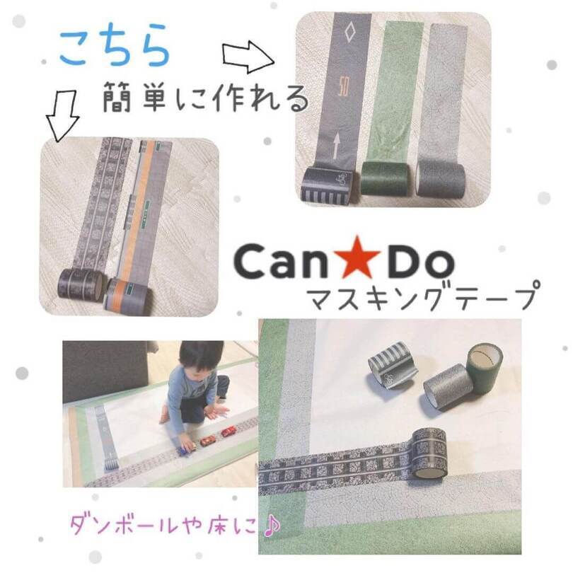 みーママさんは、ダンボールにCan★Doの道路や線路マスキングテープを貼って、トミカタウンも手作りしたそうですよ。こちらもぜひ真似してみたいですね。