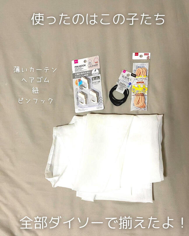 こちらもぬいぐるみ収納のアイデア。実はこのハンモックは【ダイソー】の薄手のカーテン(330円・税込)なんです。