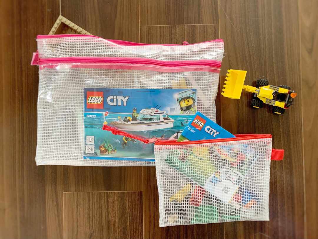 説明書通りに作るのが好きな子であれば、このように説明書と使うパーツをひとまとめにして収納するのがおすすめ!サブポケット付きのネットケースなら、説明書を入れるのにぴったり。パーツの量に合わせてケースのサイズを選べるのがいいですね。