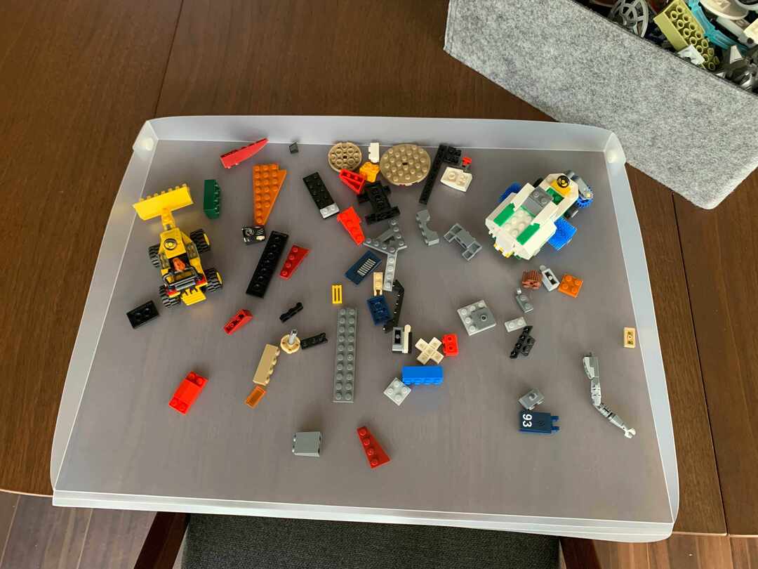 レゴやビーズなどパーツが細かいおもちゃは机で遊んでいるとき、転がって落ちてしまいがち。落ちたパーツを探したり拾ったりするのに作業が中断されるのは、ちょっとしたストレスですよね。このマットは周囲が少し立ち上がっているので落下を防止してくれます。また、「ごはんですよ」と食事で遊びを中断するときなど、マットをしならせてザッと箱などに入れることができて片付けもラク!