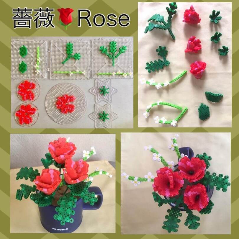 さまざまなプレートを使ってパーツを一つずつ作り、組み上げたバラの花は、圧巻の美しさ。アイロンビーズで遊んだことがある人なら、作品が出来上がるまでの繊細な作業が伝わってきますよね。