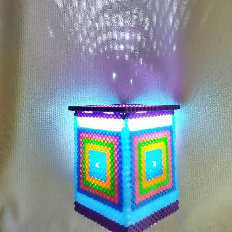 神秘的な光を放つアイロンビーズ作品の正体は、じつはペン立てなんだそう。中から光で照らすだけですてきな行燈にも変身する、アイデアが詰まった作品。