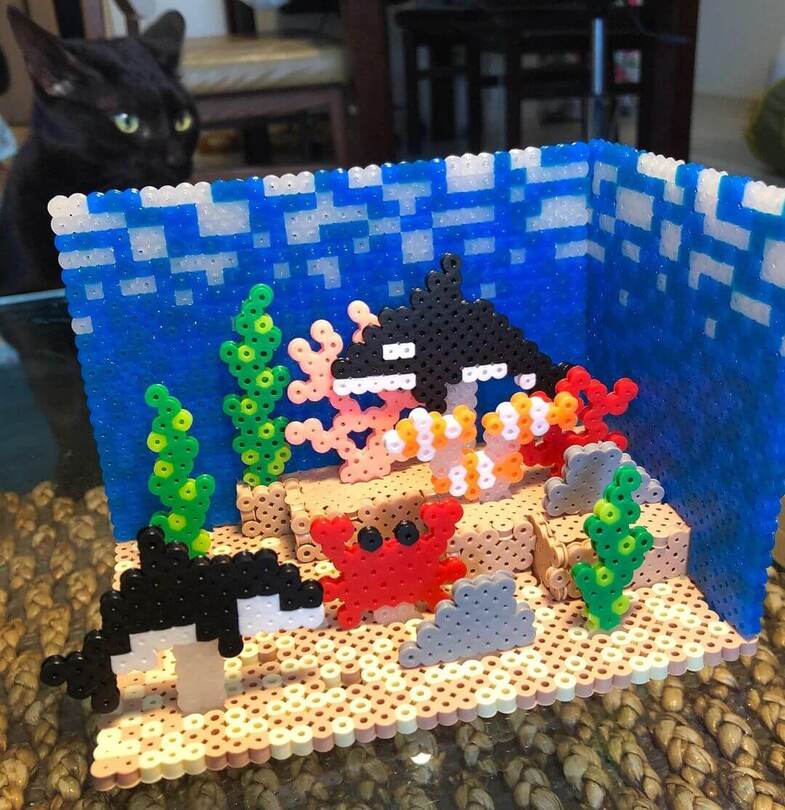 「ボケ防止でアイロンビーズを始めた」というbeads.yuuさんは、アイロンビーズの立体作品もたくさん公開されています。注目すべきはパーツの細かさ!