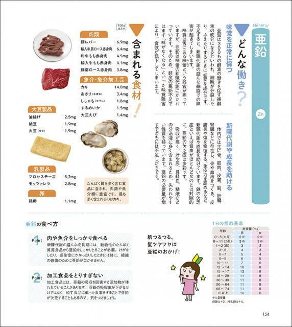 例えば「スポーツするには亜鉛が必要と聞いたけど、何を食べればいい?」というとき。亜鉛が含まれる食材や、効率よく摂取する方法などがわかりますよ。