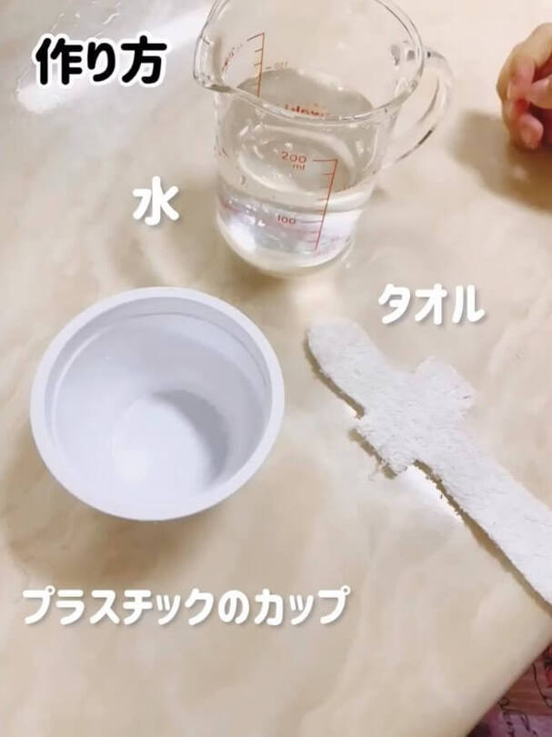 凍らせてできるのが"ニョロニョロ"だというところがなんともかわいくて大人も楽しめますが、タオルを切る形は、子どもが好きな動物などどんな形でもOK!一緒に相談しながら作るのも楽しそう♪