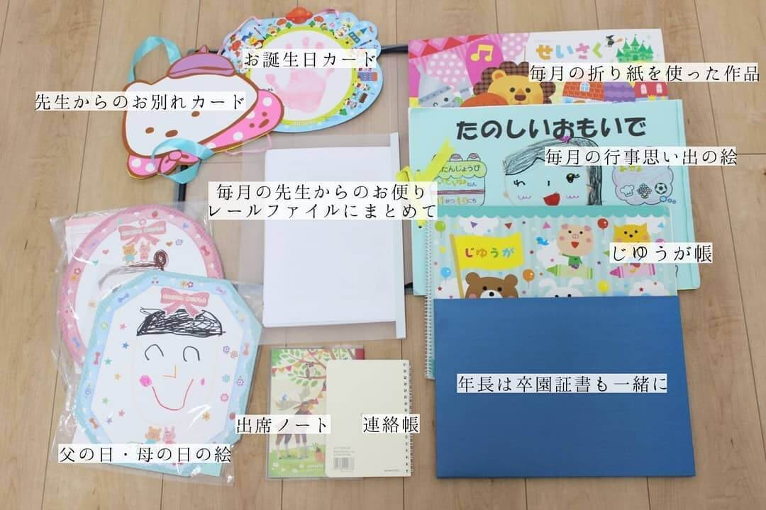 作品だけでなく、手紙や園でもらった記念のカード、使い終わった連絡帳、家族でお出かけしたときの思い出など…収納場所に困るけど、捨ててしまうのもちょっとためらわれるものはほかにもいろいろ。