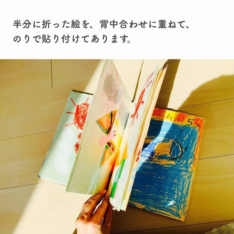 こちらはママ自身が小学校のときに描いた絵!なぜこんなにきれいに取っておけているのかというと、絵の裏側をのりで貼り合わせて、1冊の本にしてあるからなんだそう! 当時の小学校の先生のアイデアのようですが、おかげで引っ越ししても保存しておけるのだとか。収納アドバイザーになった今でも、いいアイデア!と感じているそうですよ。