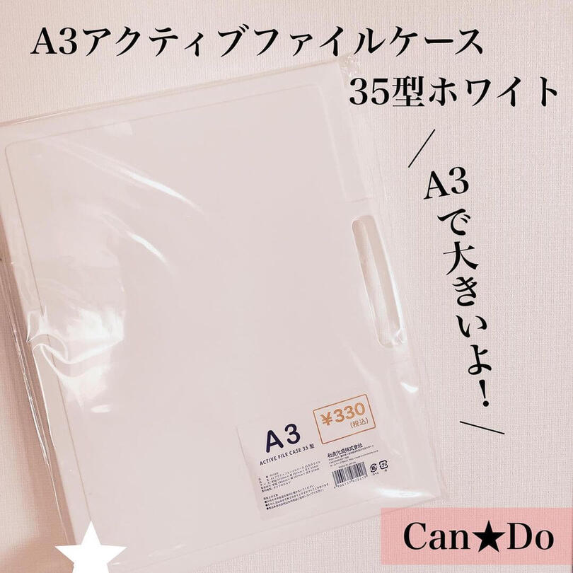 こちらは幼稚園のときに作った作品が1年分ちょうどおさまったという、キャン★ドゥの「A3アクティブファイルケース35型」。300円商品ですが、A3サイズなので賞状も入る大きさです。