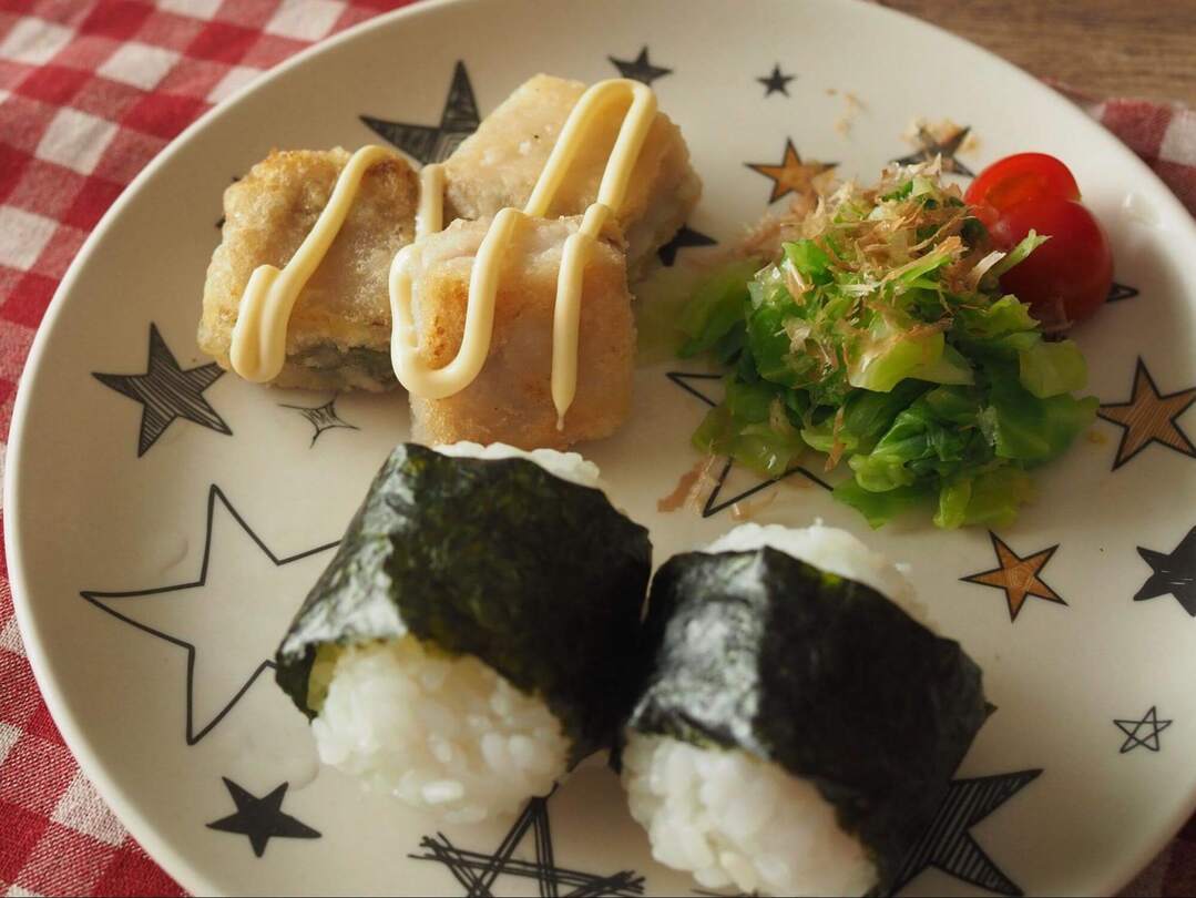 マヨネーズをかけると、タルタルソースで味わうアジフライのよう。今日はおにぎりを合わせましたが、パンに挟んでサンドイッチにしてもきっとおいしいですよ。