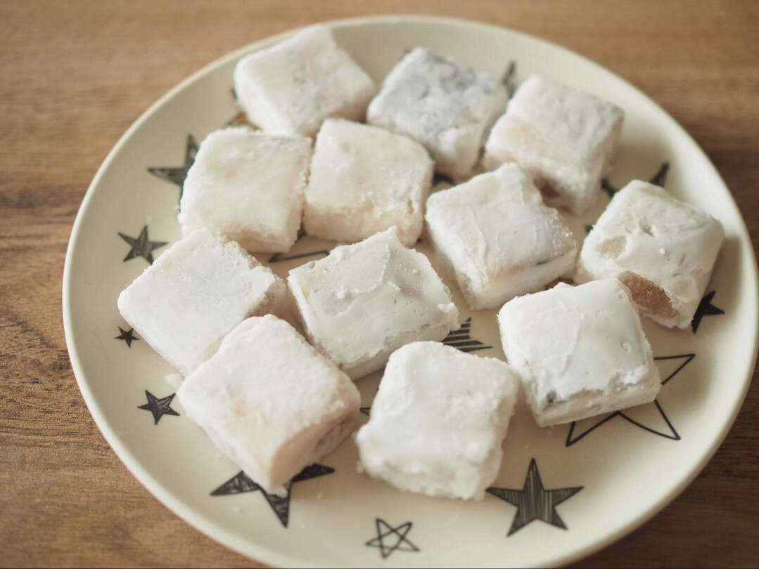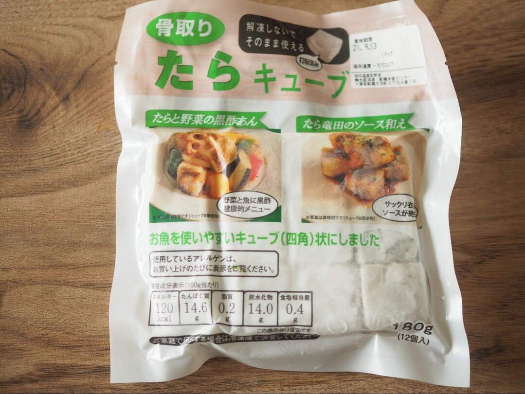 魚の骨を取り除き、四角いキューブ状にカットされ、片栗粉がまぶして冷凍されています。必要な量だけ冷凍庫から取り出してすぐに使えるから便利。しかも解凍せずに凍ったまま調理できるんです。