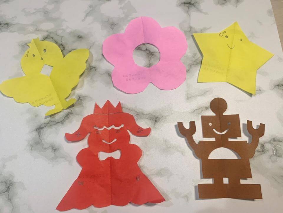 線に沿って折る・線に沿って切ることで普通の折り紙が色々なものに大変身。細かいはさみの使い方を身に付けることができます。