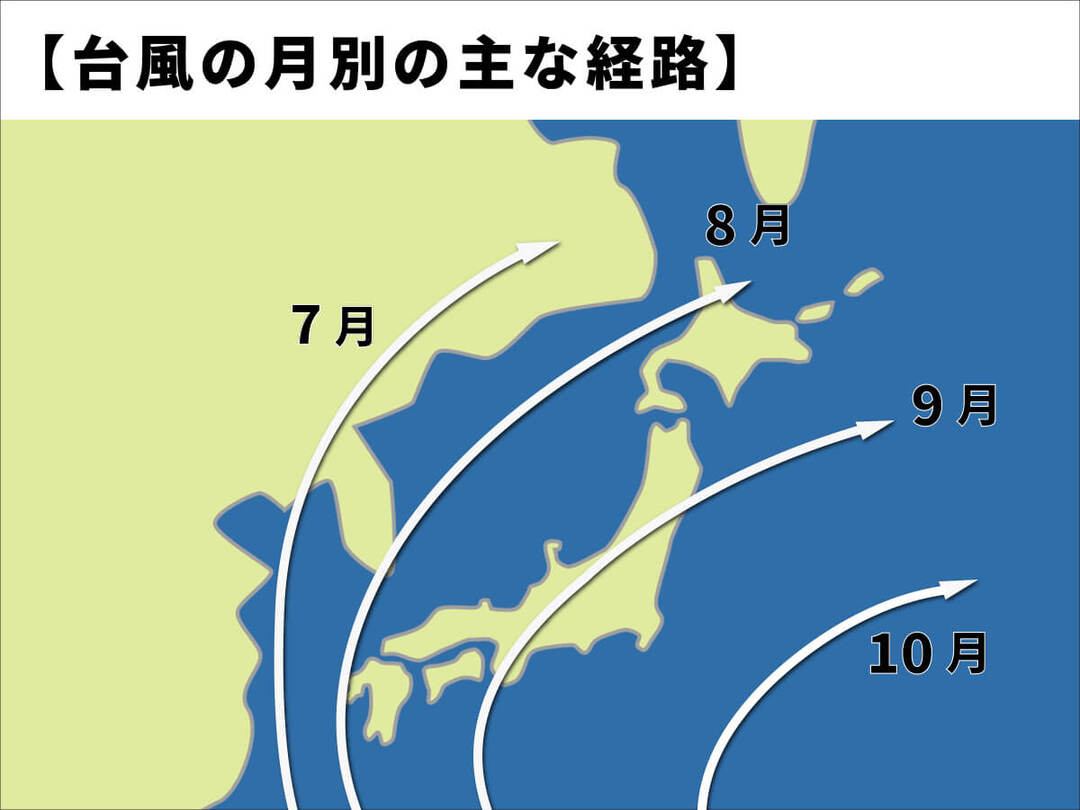 季節によって風の流れが違っているため、発生した台風が日本の近くに来るのは主に8月~10月ごろ。まれに季節外れの台風がやってくることもありますが、発生しても日本にやってこないことが多いんですね。