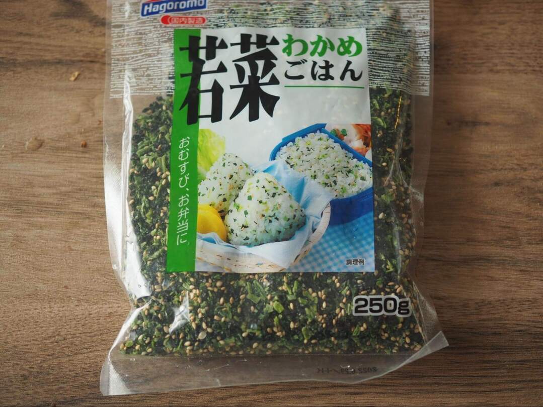 おなじみのわかめごはんの素に大根の葉がたっぷり。彩りも良いからお弁当にもぴったり。
