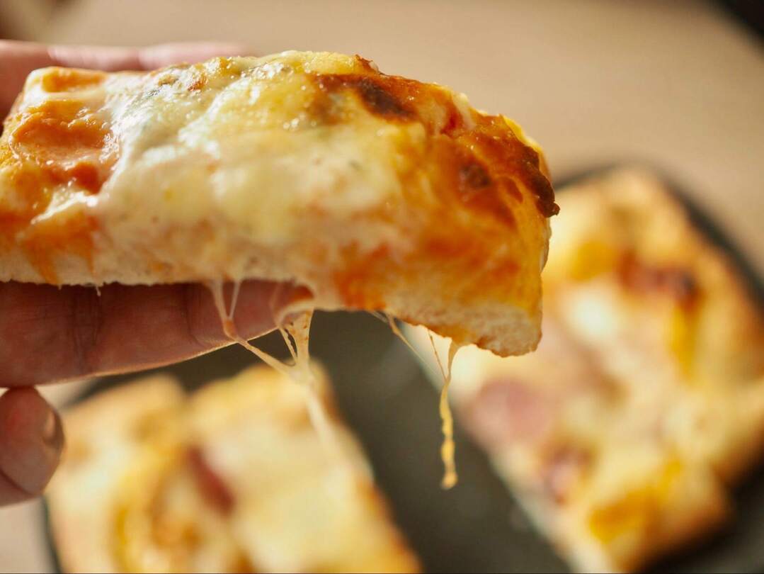 見るからにチーズがたっぷりのったピザ。温め方は500wの電子レンジで2分加熱後1200Wのトースターで3分焼けばOK。つまり5分で焼きたてピザが食べられます。