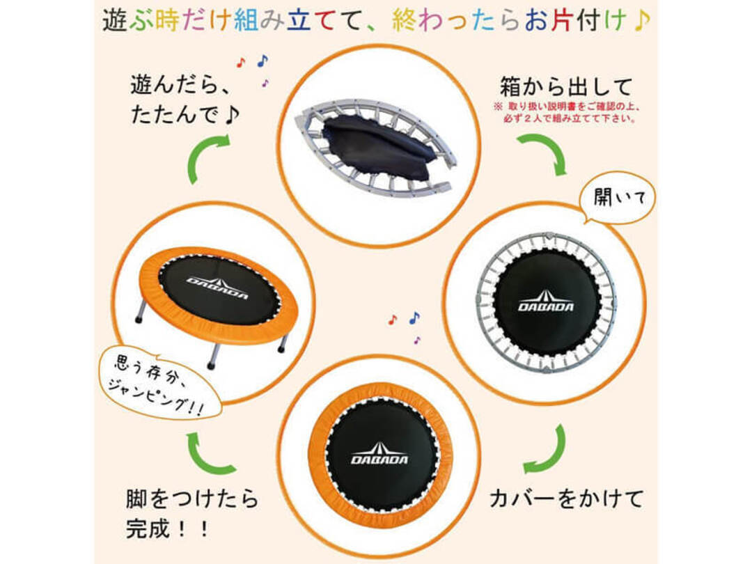 メーカーによって、組み立て方は異なります。もちろん、難易に差はあリますが、極端に組み立て手順が複雑なものはないと思います。折りたためるなど保管の便利さも「おうちトランポリン」としては重要なポイントですよね。
