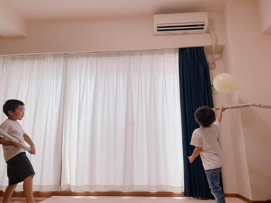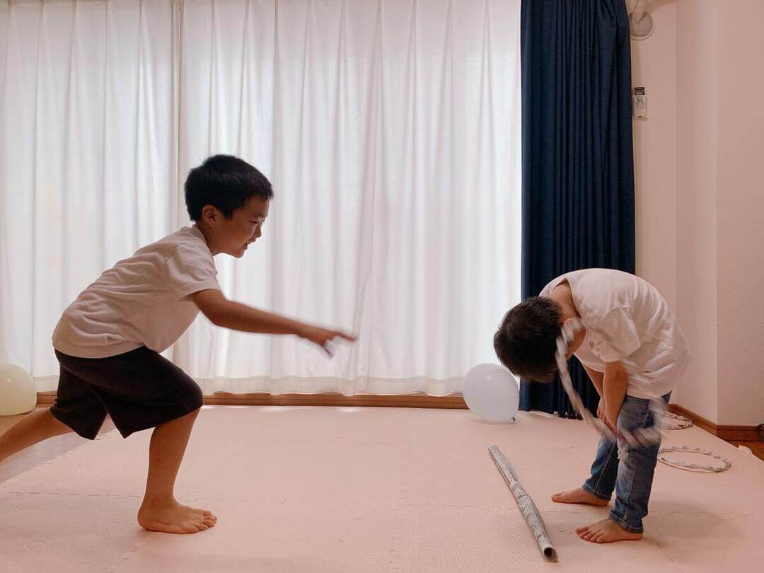 今回は新聞紙アイテムにプラスして風船も投入!我が家では兄弟そろって風船遊びが大好きで、これひとつあれば大盛り上がり間違いなしの最強アイテムとしてカウントしています。