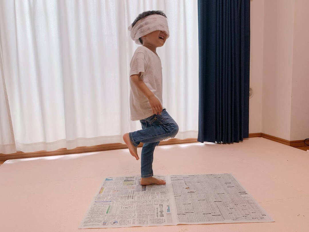 最後は「足踏み60チャレンジ」でクールダウン!広げた新聞紙の上で足踏みを60回して、タイムを60秒に寄せる…というルールです。60秒ピッタリで60回足踏みができればチャンピオンということになります。新聞紙から両足が出たらアウトです。