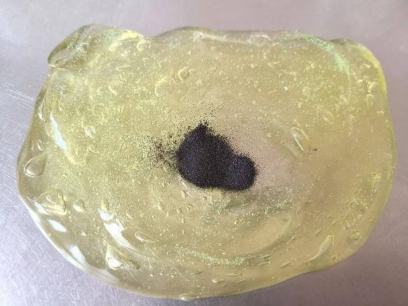 1.市販のスライムに砂鉄を小さじ1程度ふりかけて練る。