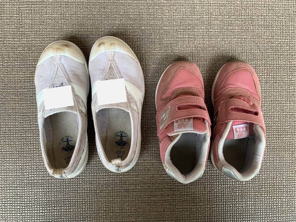 子ども用の靴を洗うなら1~2足ということなので、今回はしっかり汚れた上履きとスニーカーを洗ってみます。