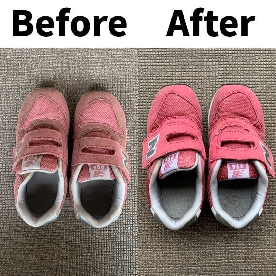 全体的に砂ぼこりでくすんでいたスニーカーもピカピカに!