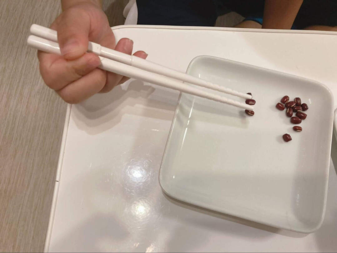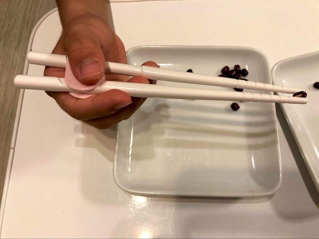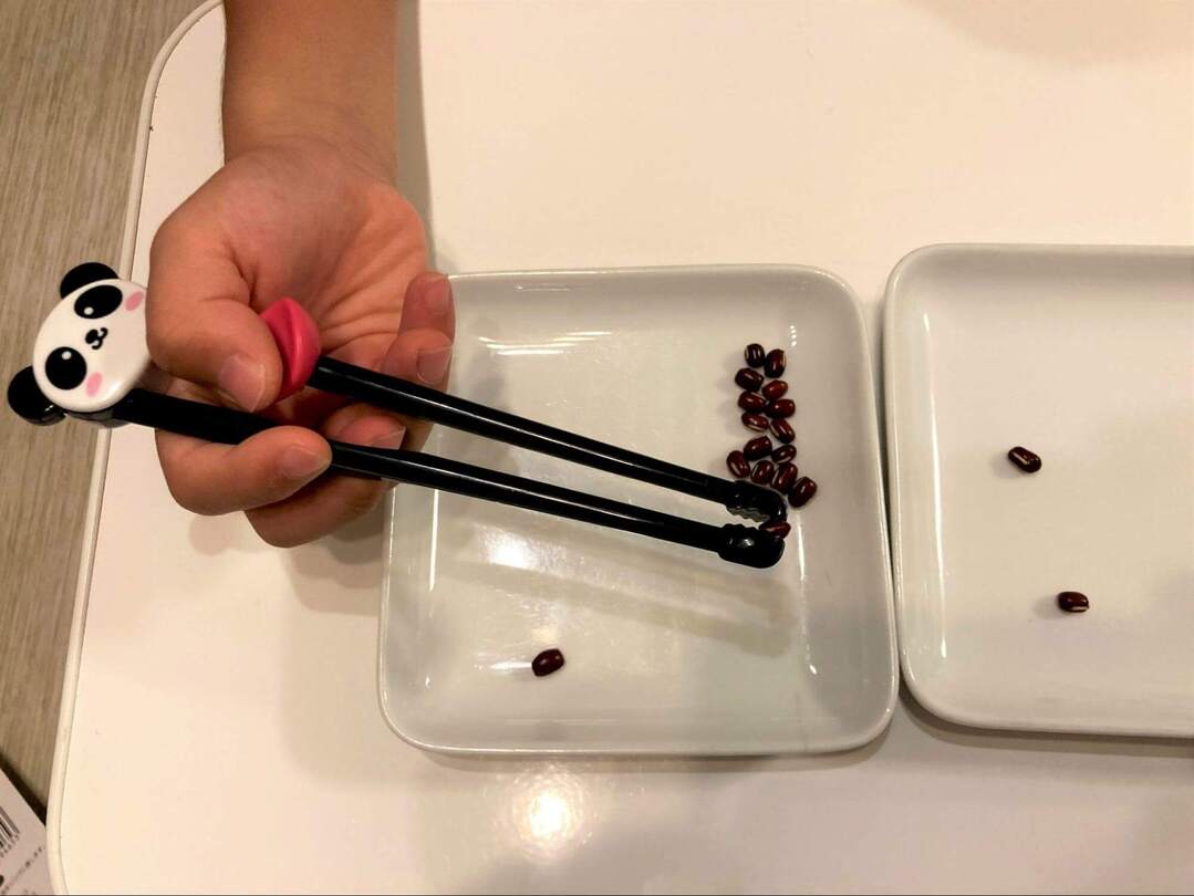 なんと、今回いちばん多く小豆をつかめたのはこのグッズでした!というのも、このトレーニング箸は先が太くギザギザの滑り止めがついているため、「つまむ」という動作へのサポートがピカイチなんです。