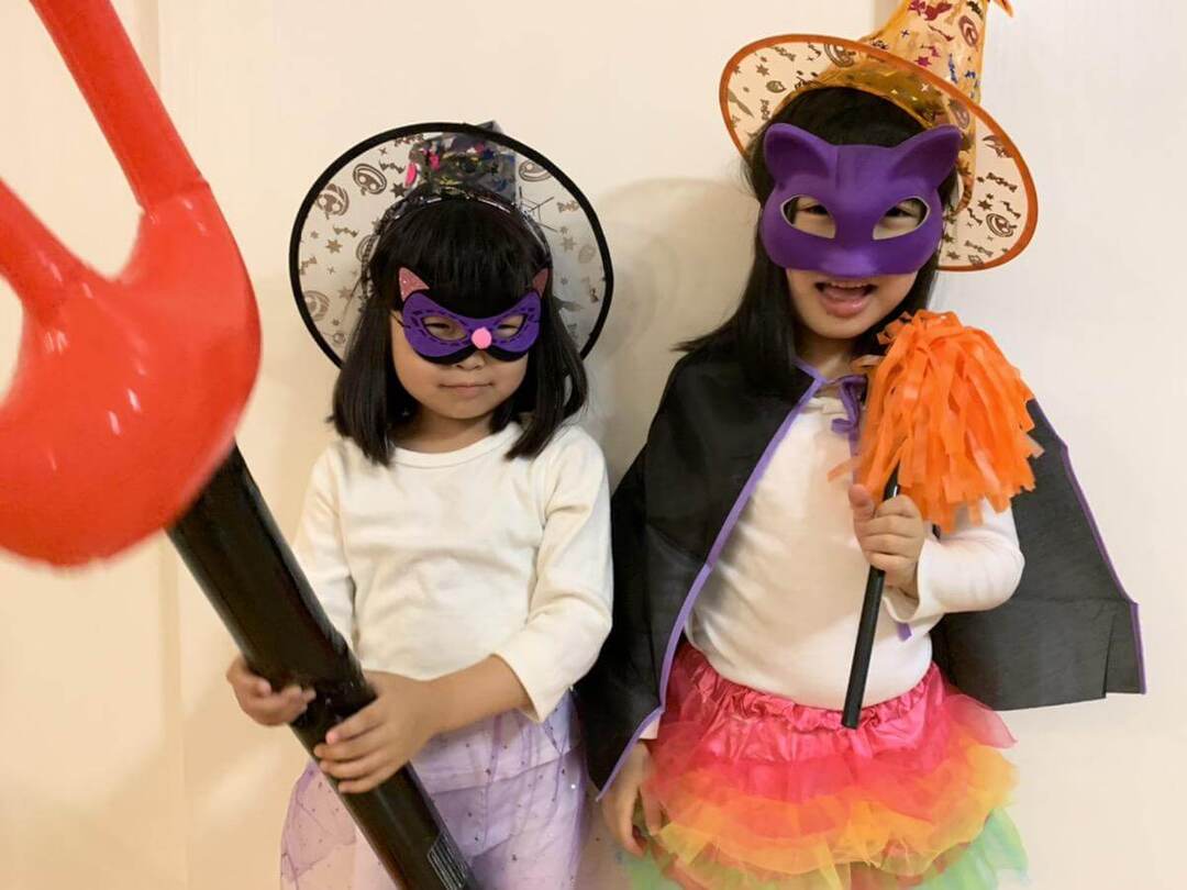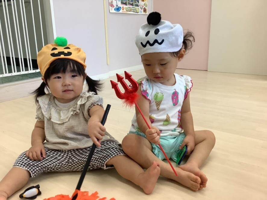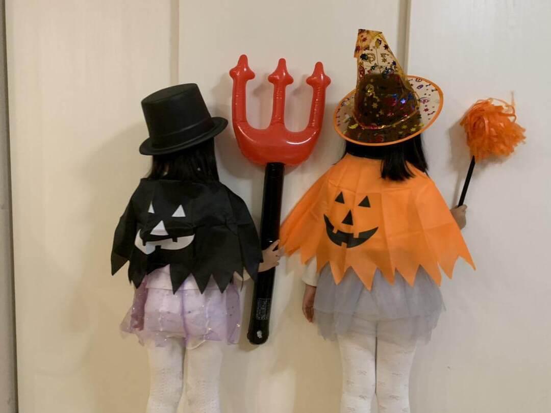 2人が持っているアイテムもセリアのハロウィングッズです。