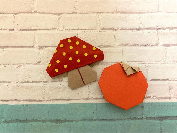 さっそく秋の味覚「きのこ」と「かき」を折ってみました!裏面が白すぎないので、きのこの石づきや柿のヘタとの色の差が、よりナチュラルで秋っぽさが増していませんか?