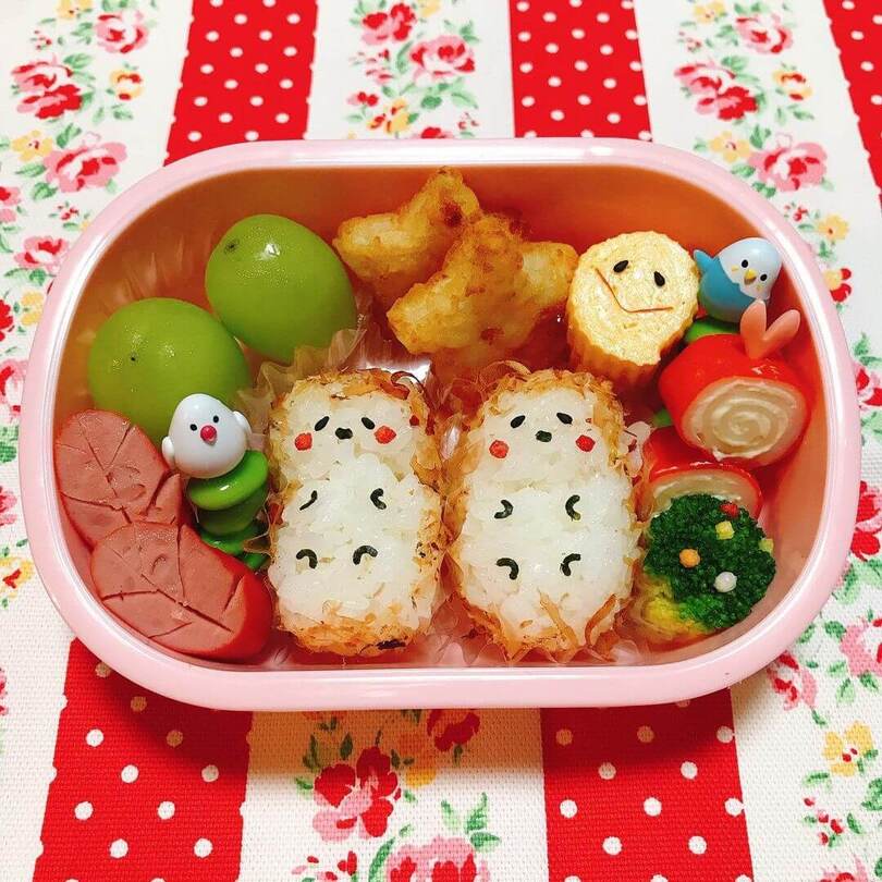 こちらは年少さんの娘さんのお弁当。園の指定で毎回おにぎりのお弁当を持参しているそうですが、この日はハリネズミおにぎりが!