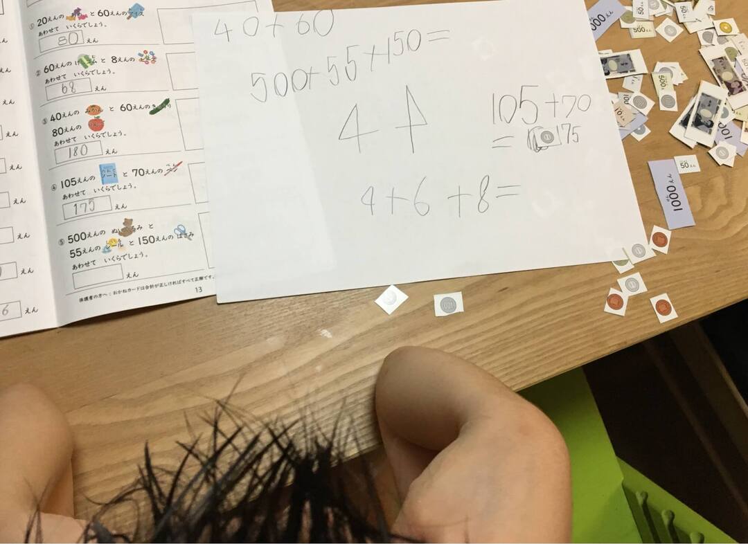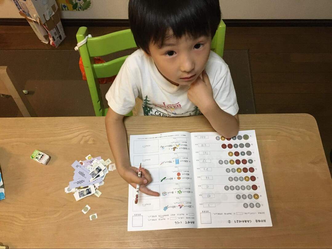 進めていくうちに、おかねを数えるのは慣れてきたようです。