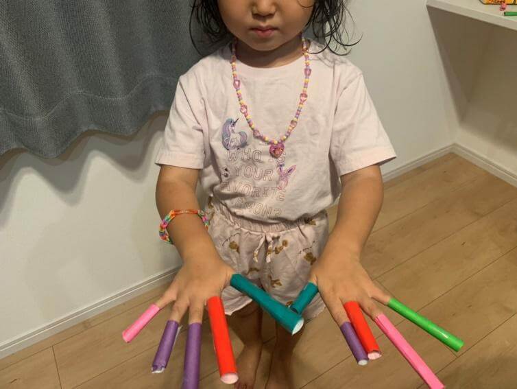 えんぴつにおりがみを巻き付けて作る「まきまきぼう」がいつの間にか、つけ爪に変身していたり……。